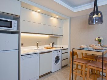 Нам понравилось. Приятные апартаменты в Сиде. Выбирали по отзывам. Душевное место, всё сделано для комфортного отдыха. Уборка КАЖДЫЙ день, что удивило, так как это не отель 5 звёзд. Полотенца и постельное белье также меняют каждый день. Пляжные полотенца предоставляют. При заселении в качестве комплимента: капсулы для кофемашины, вода, лимонады, пиво. Апартаменты оборудованы всем необходимым: посуда, холодильник, плита на две конфорки, чайник, капсульная кофемашина, микроволновка, стиральная машина, посудомоечная машина, фен (кстати, фен приличный полноценный с мощностью 1600Вт), два кондиционера (в спальне и в гостиной). Единственное, капсулы для посудомоечной машины и порошок для стиральной предоставляют на первое время (хватит на 3 стирки и 4 загрузки посудомоечной машины), дальше приобретаются самостоятельно либо в магазине, либо на ресепшен. Из необычного — джакузи на балконе. Средство для мытья посуды, губки, тряпочки приобретали отдельно, в апартаментах это не предоставляется. При этом, шампунь/кондиционер для волос и жидкое мыло в душе было. В пешеходной доступности супермаркет Migros, чтобы было очень удобно. В этом году у апартаментов договорённость на пляж с отелем Simus. До пляжа неспешно с ребенком шли 15 минут пешком, обратно чуть дольше, так как подъём в горку. Нам было комфортно, так как если бы это было близко, мы бы не выхаживали дневную норму шагов😂 Кому лень ходить, также можно воспользоваться трансфером до пляжа: 2 рейса утром на пляж и 2 рейса вечером с пляжа. Отдельная благодарность сотруднику — Татьяне. Отзывчивая, свободно разговаривает на нескольких языках, рассказывает про интересные маршруты и в целом про отдых в Турции. В отеле один раз брали Турецкий завтрак. 12 евро с человека. Порция огромная, смело можно брать одну порцию на двоих. На территории два бассейна: взрослый и детский, но мы в них ни разу не плавали, ходили на море. Территория ухоженная, много зелени и цветов. Хотим вернуться ещё!♥️