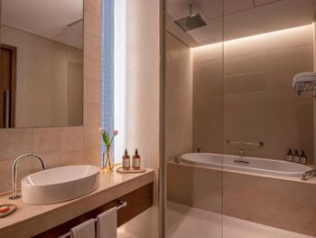 Гости апарт-отеля с 5 звездами Abesq Doha Hotel and Residences, an IHG Hotel могут воспользоваться сауной и гидромассажной ванной.