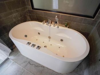 Покрытие ванны было, к сожалению, чем-то испорчено, возможно химией, выглядела грязной, хотя действительно была чистой - это несколько портило общий вид виллы.