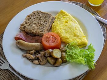 Недостаточно чисто было, но я объяснила как мне это важно и что мы будем жить почти 10 дней и все тщательно помыли. Завтрак - ты выбираешь себе набор - предположим омлет с сосисками, или яйца Бенедикт или блинчики и 1 напиток типа капучино. Но также можно еще взять фрукты и тосты