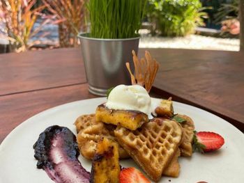 Утром нужно было заказывать завтрак, ожидание заказа иногда достигало 1 часа и к тому же могли принести не то, что заказывал. Продукты которые размещены на шведском столе (фрукты, овощи т.д) всегда приносятся в минимальном количестве, их очень быстро разбирают (хоть они как правило неспелые), а новые приносить никто не торопится, в итоге вы можете их просто не увидеть за все пребывание на завтраке.