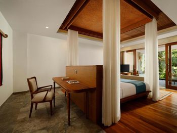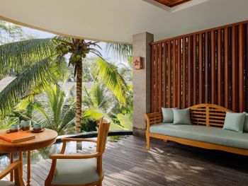 1. Еда в ресторане не вкусная 2. Отель и правда далеко от Убуда, вроде не далеко по километрам, но с учетом местных дорог ехать 45 мин в одну сторону, хотя отель и предоставляет трансфер 3 раза в день. 3. Выбирая этот отель нужно быть готовыми к живностям не только на территории отеля, но и внутри Ваших комнат. К нам на виллу пришла лягушка, которая сидела под самой крышей над кроватью. Мы вызвали службу и им, при помощи длинной удочки, удалось ее достать. Однако, в номере все время появлялись какашки разных животных и птичек. :) 4. Очень много лестниц. Для нас это минус. 5. Массаж. Не всегда везет с массажистом. У моего мужа была классный мастер, а у меня плохой. На руках было что-то шершавое или мозоль и было очень не приятно и холодно во время массажа. Я попросила сделать потеплее и меня накрыли тоненькой пеленкой, которая не согрела совсем :) А еще, сразу после массажа нам надо было заполнять анкеты про массажистов. не лучшее время, сразу после массажа, напрягать мозг анкетами, когда хочется расслабления.