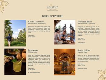 Abisena Wellness & Resort Ubud-Adult Only располагается на расстоянии 8,1 км и 8,3 км соответственно от таких достопримечательностей, как Saraswati Temple и Дворец Убуда. Международный аэропорт Нгурах-Рай находится в 39 км.