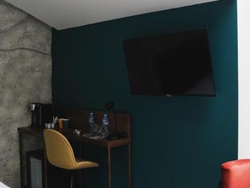 Номер Делюкс достаточно просторный, хороший вид на горы. Можно подключить свой роутер для работы (RJ-45). Интерьер красивый, но требует небольшого обновления и ремонта.