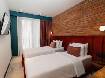 Выбрали этот отель по отзывам на Booking.com. Приехав в отель поздно вечером были приятно удивлены красивыми современным дизайном в стиле лофт. Но прийдя сутра на завтрак были крайне разочарованны, так как назвать завтраком это было крайне сложно. Омлет, сосиски сыр и круассан, на этом все! На вопрос «Где овощи ( хотя бы огурцы и помидоры) нам ответил -«у нас овощей нет». Так же очень расстроило отсутствие мини бара(холодильника), так как приехали в сильную жару и очень хотелось всегда иметь прохладные напитки. На следующий день ресторан нас совсем разочаровал, так как мы ехали рано на экскурсию и пришли к открытию в 8:15 ( завтрак у них с 8:00 до 11:00) и были в шоке от увиденного. Все столы были завалены грязной вчерашней посудой, бокалами, полными пепельницами, поэтому нам минут 20 пришлось ждать пока приберут и мы все таки сможем позавтракать. Вернувшись поздно вечером с экскурсию , мы были полностью в шоке, так как наш номер был открыт. Спустившись на reservations и возмущенно сказав об этом менеджеру( так как у нас там было много ценных вещей: Mac book, iPhone, золотые украшения), на что она нам спокойно ответила-« Ой извините, наверное уборщица забыла закрыть»