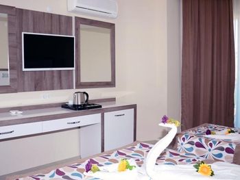 Отель хороший, в номере уютно несмотря на потёртости вещей. Персонал говорит на русском языке, все приветливые. Понравился также хамам с сауной. Отличные массажисты. Окна номера выходили на Memoş Restaurant. В 21.00 начиналась живая музыка. Поют отлично, от мирового рока (Metallica) до русского рока и поп. Поэтому приходилось не спать до 00.00, а петь и танцевать. Также в отеле божественное какао. Все виды коктейлей (алкогольные и без) за отдельную плату. Напитки бесплатно до 23.00. Еда также хороша, много сладостей и сыра. Пляж мин 5-7 ходьбы. Не далеко торговый центр. Спасибо всему персаналу за наш отдых!!!