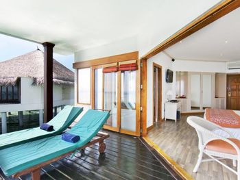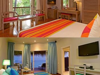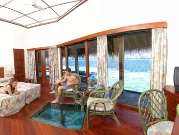 2. Мы жили на водной вилле. Виды с террасы прекрасные и это единственный плюс. Мебель старая и обшарпанная, в душе невыносимо пахнет канализацией. Но это, как я потом поняла, вероятно проблема всех водных вилл. Уборка номера 2 раза в день и заключается в развешивании полотенец, заправлении кровати и докладывании шампуней. Песок с пола, который мы принесли на ногах, у нас не выметали.