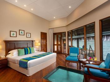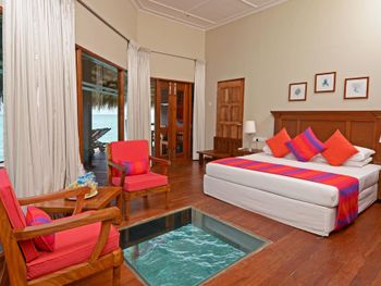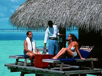 слово уединение, это не про этот отель((. водная вилла обзор со всех сторон, а с соседями по вилле приходилось натягивать полотенце между пати, в противном случае были все шансы бок о бок лежать с соседом (чужим мужчиной). На пляже вилла это аля-Турция в самый сезон, где пустой лежак надо постараться найти на всём побережье, а потом еще постараться его где то разместить, что бы ноги соседа тебе не упирались в голову (или наоборот), потом побегать и найти матрас для лежака….квест сплошной. В ресторане (я бы назвала столовой) столы расположены на 20 см друг от друга со всех сторон, людям приходилось пробираясь к своему столику обтирая задней точкой столы гостей, которые уже принимали еду и это,мягко сказать, было дискомфортно, при том что люди как муравьи перемещались. вино только сладкое (не вкусное), пиво нормальное.
