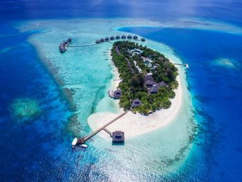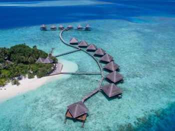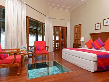 The ocean there is absolutely amazing. The water is crystal clear, the visibility is 60feet(20m), the water temperature is in upper 80s F (30+C), fairly calm, excellent for snorkeling, especially near the cargo dock/jetty (and that side of the island) Probably one of the best snorkeling I have experienced, way better than in comparison to Caribbeans/Mexico, Hawaii, Great Barrier Reef. Often saw a 3m nurse shark near the cargo dock (they said it is not harmful). Plenty of tropical fish (think of Finding Nemo), sea cucumbers, beautiful coral reefs, once saw an eel, a sea star and I think an octopus under a rock(but not sure though). Good swimming too (with swim goggles). There are currents but fairly weak. Each room has a couple of floating jackets should one need them for snorkeling. The island is about 75mx300m, about 750m (0.46 miles) in perimeter. Very peaceful and tranquil. About 100+ guest, say 80% european and 20% indian. Beach houses have their own "semiprivate" small beaches, say about 15-20m away from the room. There are two ping pong tables and a badminton net/court with rackets not far from the doctor\'s. It is popular to hang out at the main bar (with live music) before and after dinner, stargazing there is fun too. PCR test results are available in 12h if done in the morning. Best snorkeling is in the morning (and not only) on the northern side of the island (the side where the cargo dock is, which is opposite to the side with water activities) along the edge of the reef (where the light blue color changes into deep blue). It is possible to run/jog around the island (the loop is about 750m), mostly on sand but make sure to do it around the sunrise otherwise it is very hot.