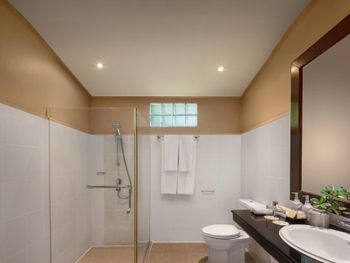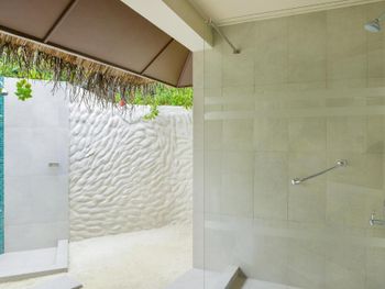 Нужно убрать песчаную зону в ванных комнатах в виллах на пляже - это неудобно ,песок тащится в комнату.