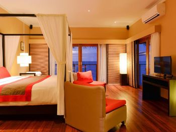 Получили огромные удовольствие от поездки. С виллы видели множество рыб, акул, черепаху. Очень отзывчивый персонал. В номере ждали фрукты и шампанское. Прекрасный ресторан для водных вилл.