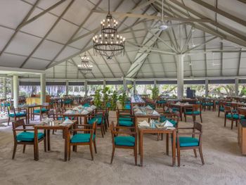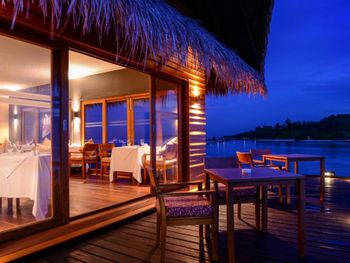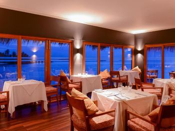 Для тех кто останавливается в вилле на воде отдельный ресторан - питание там действительно немного лучше чем для всех остальных. Если хотите виллу на воде с видом на закат имейте ввиду нужно брать виллу с нечётными номерами.