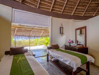 Отель не 5 звезд точно, на букинге ошибка. Твердая 4, не более! Сервис слабоват и не внимателен. Батлеры уставшие и выгоревшие на своей работе. Программу на день выслали один раз все 6 дней. Выход с пляжных вилл к воде не у всех пляжных вилл, много зарослей из деревьев - из-за них не видно море. С нашей стороны острова в море было много травы, что мешает комфортному плаванию. Узкая береговая линия. Приходилось ходить на другую сторону, где не всегда были свободные общие лежаки. Нет возможности все централизовано решить / заказать экскурсии или что- либо узнать от Батлера. Все время надо самому ходить выяснять. Экскурсия на снорклинг переносилась несколько раз, якобы из-за ветра, подходили за полчаса до отправления, сотрудники не знали поплывем или нет, каждый раз бегать туда-сюда надоело.