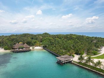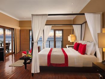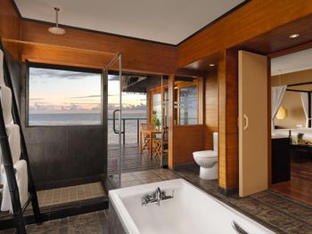 Виллы над водой оснащены кондиционером, мини-баром и телевизором с кабельными/спутниковыми каналами. Собственная ванная комната с тропическим душем на открытом воздухе укомплектована феном. Также в распоряжении гостей частный пляж.