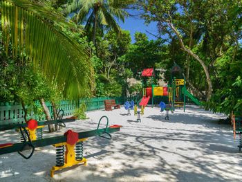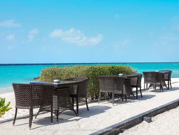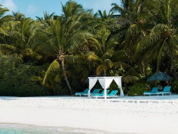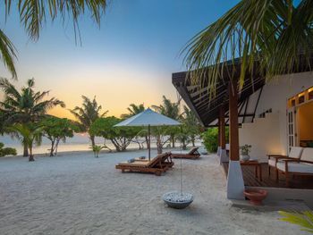 Пляжи у некоторый номеров откровенно не очень, бунгало стоят будто в лесу, а для выходя на пляж надо пробираться через кусты, при том, что это делюкс виллы. Мы в итоге просили замену номера. Также на южной стороне острова пляж в мелких кораллах и заходить в океан не очень приятно. Поэтому коралловые тапки будут очень кстати. Номерной фонд откровенно старый, но это сильно не смущает. Ванна расположена на улице, поэтому там очень жарко и может быть некомфортно, например, сушить волосы феном на жаре - то еще испытание. Уборка заявлено, что 2 раза в день, по факту у нас убирались один. Также досаждает фауна, довольно наглые вороны и мухи. Почему-то на острове время +1 к Мале, почему- загадка, т.к часовой пояс у Мальдив вроде один.