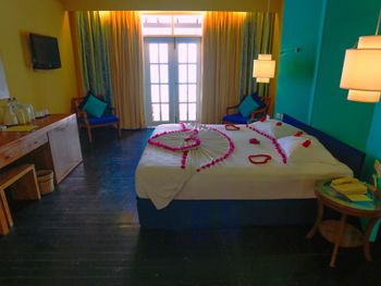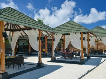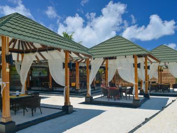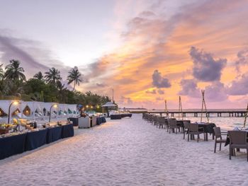 - очень старый жилой фонд, ключевое слово "очень" (сравниваем с 6! отелями на Мальдивах, среди которых были и 4 и 5), хуже размещения у нас не было нигде, при этом заплатили мы сильно дороже, чем ранее везде. Скрипит все, двери отваливаются, полы протерты, мебель старая, даже в а-ля обновленных deluxe beach villa. Мы в итоге переехали за доп. плату на 4 дня/3 ночи в Water Villa, где отдельный ресторан/пляж/сервис, чтобы исправить впечатление и улететь в более-менее радостном состоянии; - питание самое слабое, что было когда-либо. Тунца не было ни разу, при том, что это ключевой продукт Мальдив! В итоге заказывали его за доп деньги. Сухое мясо и рыба, причем всегда, очень мало овощей, типовые блюда каждый день, вроде идешь в ресторан, но как в столовке, запахи жареного, грязные столы и т.д., много острого и индийского, даже отдельный ресторан только индийской кухни. В течение дня можно покушать только в кафе Напитки - на завтрак фрешей НЕТ, только пакетированные соки, они появляются только в обед, когда открываются бары, вина только столовые на раздаче, пиво 1-2 вида, коктейли не вкусные (из тех, что брали...); - крысы дохли прямо в номере (где душ), также их встречали вечером по пути на ужин в ресторан, такое себе впечатление.