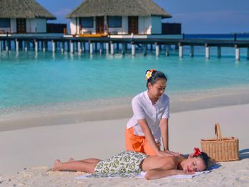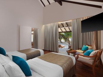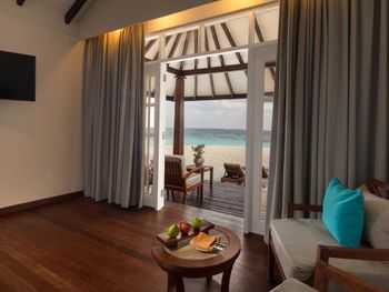 Отличные белоснежные пляжи, бирюзовая вода, приватность, никакой скученности, суперский релакс, афигенные виды, на респшен работает сотрудник Аруна, учился в России,знает русский язык,поможет в любом вопросе.От меня ему отдельное спасибо.Уборка вилллы каждый день, пляжные полотенца меняют каждый день-все что нужно это оставить их на веранде. Отлично организованы-встреча в аэропорту, перелёт. За пляжным отдыхом-это сюда). Возьмите с собой репелент, пригодиться. Несмотря на обработку, в безветренную погоду, могут куснуть москиты, в ресторанах например.