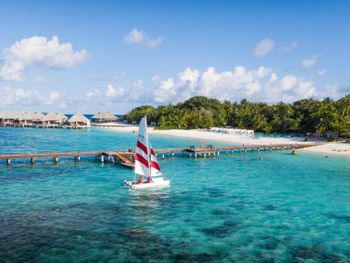 Атолл не большой можно менять берег для купания постоянно . Из за ветра, который был периодически, приходилось так делать. Русскоговорящий работник отеля рецепции всегда готов помочь. И ответственно подходил к любому вопросу.