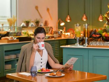 Ежедневно гостям предлагается завтрак «шведский стол», континентальный завтрак или халяльный завтрак. При Adagio Doha работает ресторан, где подают блюда ближневосточной кухни и блюда международной кухни. Гости могут попросить приготовить вегетарианские, безлактозные и халяльные блюда.