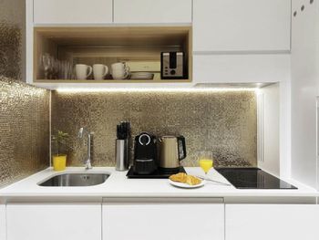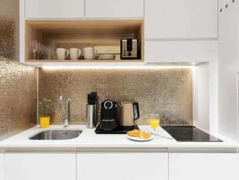В распоряжении гостей полностью оборудованная кухня, телевизор с плоским экраном, а также собственная ванная комната с душем, бесплатными туалетно-косметическими принадлежностями и феном. Установлен кондиционер. Также имеется холодильник, микроволновая печь и плита. Кроме того, среди удобств есть кофемашина и чайник.