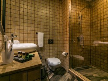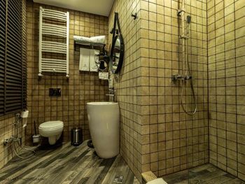 Эргономика пространства не очень хорошая. Часто задеваешь лампы, кресла и телевизор. Неприкрытый ничем вход в душ - непонятное эстетическое решение, из-за которого вся ванная комната потом в воде, даже если стараешься туда не направлять душ крана. Отсутствие каких либо полочек в ванной очень неудобно. Даже нет стаканчика для щетки(есть держатель, а стакана нет), тоже самое с ершиком - нет емкости для него - он просто стоит на полу и с него течет вода по всей ванной комнате. Дверцы шкафа перекатываются не по шарнирам, а по ковру - приходится постараться, чтобы их сдвинуть. Завтрак невкусный, к сожалению. Омлет, лепешки и выпечка очень средние на вкус. Овощи и творог хороши. У отеля есть эстетика и потенциал быть круче чем просто привлекательные фото на букинге - надеюсь он не будет увядать, а будет стремиться к улучшению.
