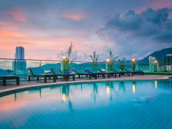 Расположение, очень близко все, много кафешек рядом, обменников, массажей, да всего! бассейн на крыше, красивый закат)
