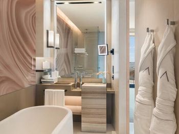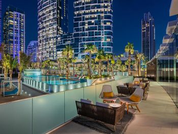 Очень огорчило странное условие отеля - доступ в бассейн на 77 этаже только с 21 года, Да, это именно условие, а не закон Дубая. Почему именно с этого возраста - мне не понятно, логичнее было бы сделать вход на бассейн с 18 лет. Чтобы подняться на бассейн нужно даже показывать ксерокопию своего паспорта секьюрити где четко обозначен твой возраст. Мы целенаправлено ехали посмотреть вид с бассейна, но меня не пустили, так как мне 18 лет. Также отель немножко экономит - в номере не было зубной пасты и щетки, хотя шампуня и другого было достаточно. Номеров с двумя кроватями очень мало, хотя при бронировании мы указывали две отдельные кровати, но позже отель ответил что их практически нет, это странно, но отель предоставил комфортную раскладную кровать, это плюс. Еще один минус в том, что в море на пляже отеля иногда невозможно и даже опасно купаться: прямо в зону купания постояльцев отеля в море заплывают на высокой скорости скоростные водные мотоциклы, иногда даже от 5 мотоциклов сразу. Становится некомфортно и приходится уходить чуть дальше. Море чуть мутное, иногда даже плавает немного мусора, так как пляж на линии городского, но море очень теплое, даже горячее, выше чем 30 градусов, это приятно. Нам ответили что пляж и зона купания в море отеля еще не доделана до конца, надеюсь, это исправят в скором времени.