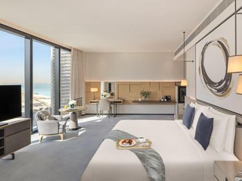 Очень огорчило странное условие отеля - доступ в бассейн на 77 этаже только с 21 года, Да, это именно условие, а не закон Дубая. Почему именно с этого возраста - мне не понятно, логичнее было бы сделать вход на бассейн с 18 лет. Чтобы подняться на бассейн нужно даже показывать ксерокопию своего паспорта секьюрити где четко обозначен твой возраст. Мы целенаправлено ехали посмотреть вид с бассейна, но меня не пустили, так как мне 18 лет. Также отель немножко экономит - в номере не было зубной пасты и щетки, хотя шампуня и другого было достаточно. Номеров с двумя кроватями очень мало, хотя при бронировании мы указывали две отдельные кровати, но позже отель ответил что их практически нет, это странно, но отель предоставил комфортную раскладную кровать, это плюс. Еще один минус в том, что в море на пляже отеля иногда невозможно и даже опасно купаться: прямо в зону купания постояльцев отеля в море заплывают на высокой скорости скоростные водные мотоциклы, иногда даже от 5 мотоциклов сразу. Становится некомфортно и приходится уходить чуть дальше. Море чуть мутное, иногда даже плавает немного мусора, так как пляж на линии городского, но море очень теплое, даже горячее, выше чем 30 градусов, это приятно. Нам ответили что пляж и зона купания в море отеля еще не доделана до конца, надеюсь, это исправят в скором времени.