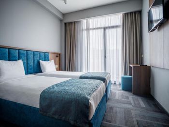 Внимательный, услужливый персонал. Местоположение в пешей доступности от вокзала Ортачала, парковка прямо в переулке перед отелем. Отель находится на 12ом этаже жилого многоквартирного дома. Просторная ванная комната. Красивый вид из номера на ночной город.