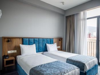Дизайн номеров, администратор Дато максимально дружелюбный и гостеприимный человек. В номере были шампунь, гель для душа, мыло, две бутылочки воды, чай, кофе. Все полотенца и постель чистые. В шкафу сейф, есть холодильник. Очень приятный аромат на ресепшн. Завтраки средние, но вполне можно покушать.