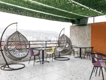 Ну что можно сказать, мы остановились с молодым человеком на две ночи, район обычный городской, сам отель находиться в высотке, на отдельным этаже. На первый взгляд было уютно, девушка дала нам карту от номера, мы зашли и конечно были не ноги в шоке, в комнате воняло непонятно чем, мы уже спросили, чтобы на переселили, так как находиться там было невозможно. Нам просто посоветовали открыть окно, что и так было сделано, до нашего прихода, в итоге, мы включи кондиционер и он как-то прогнал этот запах с комнаты, если его выключить, то вонь снова будет вонять так же. У нашей двери был сломан косяк, прям был выбит. Из-за чего мы переживали, что кто-то из других гостей сможет зайти в наш номер и взять личные вещи, если дверь не сможет закрыться. В ванне, у нас ломалась лейка душа, мы не могли ее закрепить никак, видно было, что держится на соплях все. Это конечно нас удивило. По поводу завтра ничего плохо не могу сказать, за такую цену очень даже неплохо, и милое крыльцо, где можно было понаблюдать за городом и горами. Внизу было магазины, что достаточно удобно. Вечером было тяжело найти место для машины, ну думаю, так везде в городе. Так же из плюсов, смогли оставить чемоданы до вечера.