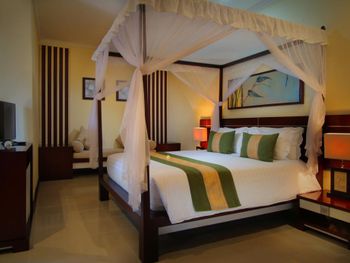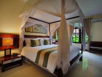 Simple and comfortable, rooms have a tranquil atmosphere and are set amidst a lush tropical landscape. Guests can also pamper themselves with a session at the spa, which provides a variety of massages and body treatments.