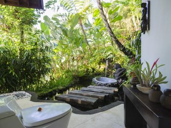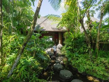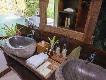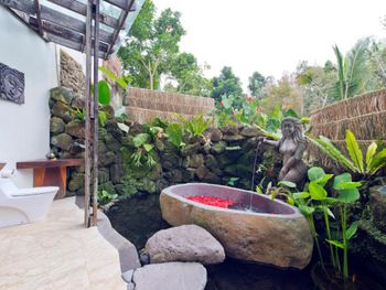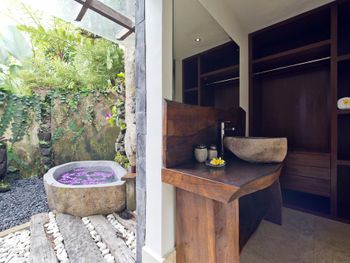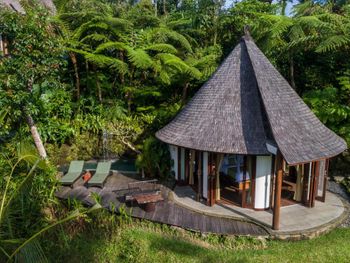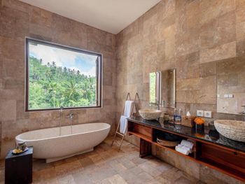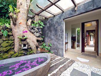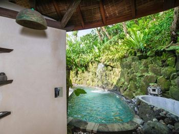 Очень атмосферный отель в самом центре «джунглей» с красивыми пейзажами тропических лесов и рисовыми террасами. Изюминка отеля – открытая ванная комната с каменной ванной, общий для всех инфинити бассейн, а также мини-бассейн (в отдельных виллах), ну и просто шикарные и фантастические виды. Лучше бронировать отдельную виллу! 1-2 дня пребывания в отеле достаточно)) Можно заказать ванную с цветами, а также завтрак в бассейн (нам обошлось в 400 инд. рупий). Еда обычная – без изысков