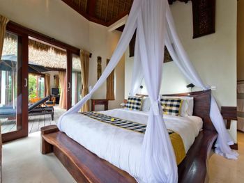 Мы проживали в вилле Делюкс и вилле люкс с видом на рисовые террасы. Делюкс не рекомендую однозначно. Во-первых, грязно. Во вторых - и это доставило максимум неудобства - вилла темная, без единого луча солнечного света, глубоко в грязных джунглях. На всей территории отеля довольно чисто и ухожено, цветники. А эта вилла расположена на отшибе, среди гор старых листьев и начищенных пальм. Во-вторых (и это поразило больше всего!) постельное белье воняло затхлостью и плесенью. Несколько раз просыпалась ночью от этого неприятного запаха. В номере люкс такой проблемы не было. А наша вилла плохо вентелировалась и воздух был затхлый, с примесью запахов из канализации. Как вы понимаете - вид на вилле отсутствовал. Взгляд упирался в начищенные бурьяны.