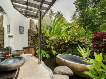 Во первых, вилла находится среди джунглей, далеко в горах. Если вы берёте такси, будьте добры раскошелиться)) комплекс сам по себе уже пошарпанный, пора обновить ремонт) мы снимали виллу и она не стоит этих денег! Вилла с одним холодным бассейном, в котором не работала подсветка и фонтан с каменной стены. Постельное белье влажное, понятное дело из за погоды. Сама вилла не тянет на 200 баксов. Да тихо, да спокойно. На день сошло, но за меньшую стоимость. Ну и вишенка на торте - это живность))) у нашей виллы летал такой огромный шершень, просто анриал! Соответсвенно, покупаться в бассейне мы толком не смогли, каждый раз как выходили из виллы, этот постоялец вылетал к нам в компанию))) в общем, если вы любите природу и у вас дофига бабла - добро пожаловать!;)))