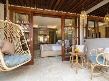 Номер не стандартной планировки, нам не понравился. Нет ванной комнаты и нормального туалета. Вода в душе с вонючим запахом. Номер был на первом этаже у бассейна - никакой приватности. Бассейн во внутреннем дворе и в нем постоянно орут дети, невозможно расслабиться и позагорать.