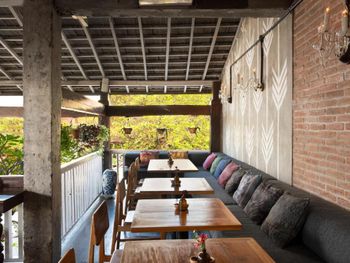 Дружелюбный персонал, замечательные завтраки ( по меню приносят на террасу в удобное для вас время). Маленькая, но очень уютная и красивая территория ( номер 122 был с видомна бассейн).Сказочная атмосфера! Пешком до леса обезьян, на такси до рисовых террас, вокруг много храмов. Улица с кафе- ресторанами и магазинами.