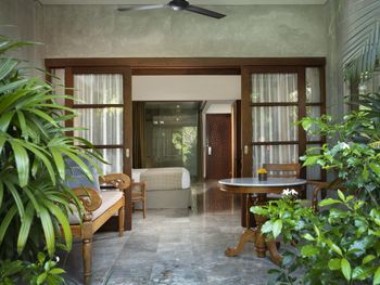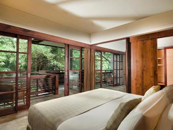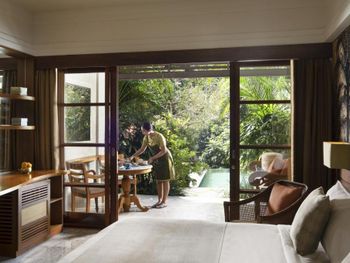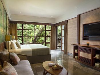 Просторный номер с вид на бамбуковые заросли, с шумом реки и птиц. Классный бассейн.