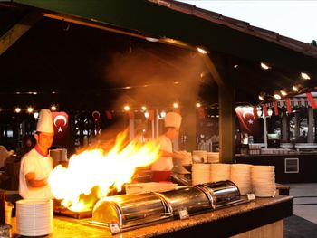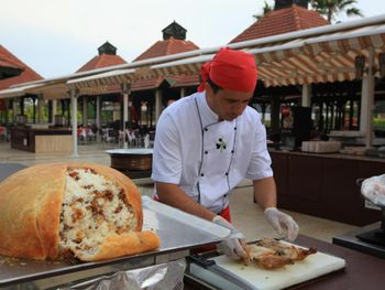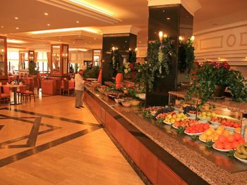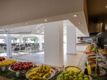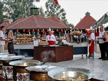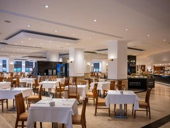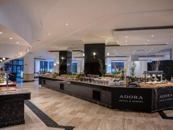 Курортный отель Adora работает по системе «все включено – ультра». На его территории открыты 4 ресторана с обслуживанием по меню, снэк-бар и традиционная блинная. Гости могут посетить представление театра под открытым небом и потанцевать на дискотеке отеля.