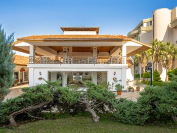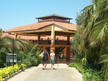 Недалеко от аэропорта. Жили в красивом главном корпусе. Чистый песчаный собственный пляж. Дружелюбный персонал, желающий помочь. Особенно хочу отметить Arina! Потрясающая девушка, заселила нас раньше и все рассказала, несмотря на занятость. Спасибо!. Комфортный номер с видом на море, кондиционером, балконом, сейфом, чайником. Сауна и хамам. Вечерние шоу. Еда на гриле. Территория небольшая, но ухоженная. Пальмы и бугенвиллея!