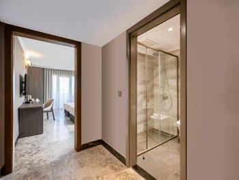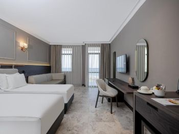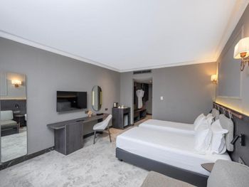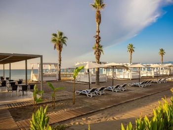 Отзывчивый персонал, чистый пляж, достаточное количество шезлонгов/полотенец и на пляже и на бассейне, вкусная еда и хороший алкоголь (вино, пиво, шампанское). Мини бар в номере пополняется ежедневно. Недалеко находится Land of legends с множеством магазинов. Есть крытый бассейн, хамам, сауна. Есть прокат авто при отеле, с такси в этом районе проблема.