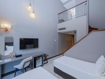 Немного сложное расположение номеров, изначально показали более длинный маршрут от ресепшена к номеру через само здание. В районе отеля нет автобусных маршрутов, заказать такси через Uber тоже не получится, либо почти час идти до Мигроса в Кадрие, либо пользоваться местными такси (15€) и уже оттуда можно заказать uber.