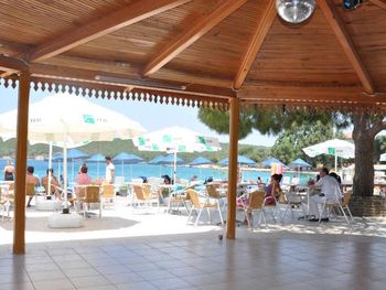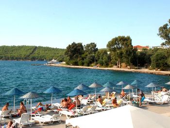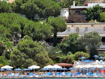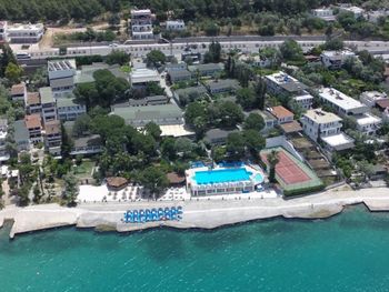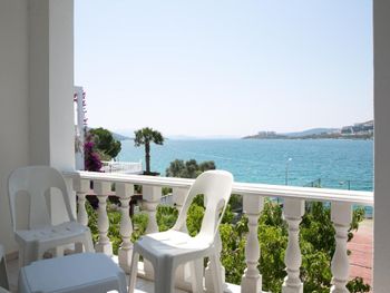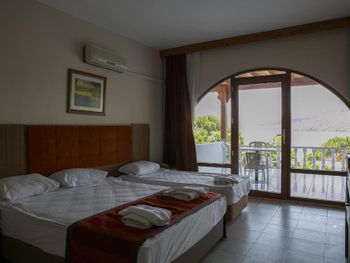 Очень красивый вид из окна, просторные веранды, зелень по территории отеля. Пляж каменистый, вход через пирс, рядом небольшой вход через галечный пляж. Отель расположен в тихом и уютном месте. В основном иностранцы и местные, русских почти нет.
