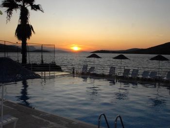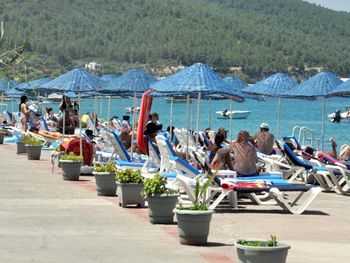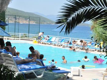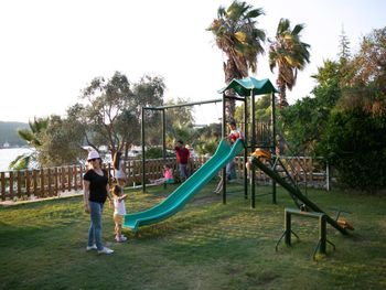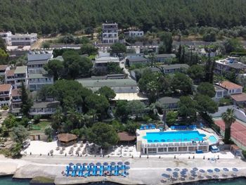 Отель с симпатичной растительностью-оливки,сосны,лимоны.Вода в бухте значительно теплее ,чем в Бодруме. Персонал на ресепшен,ресторане и барах дружелюбный.