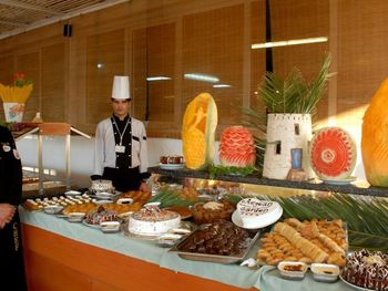 Отвратительный персонал особенно в столовой. Про старость и чистоту номеров можно не говорить, отель без звезд. а про персонал столовой расскажу: 1. "Зав зал столовой" просто высший пилотаж. Моя мама не доела свою еду на обед, т.к. оклиматизация проходила тяжело и решила не доеденный обед СВОЙ забрать в номер что бы после дневного сна его доесть, человек в возрасте, однако этот "супер" завзал чуть ли не за руку схватил и начал скандалить как будто мы укарали эту еду ХОТЯ ЗА ВСЁ ОПЛАЧЕНО и такой номер и "разнообразие" еды с тухлыми салатами явно стоит дешевле. 2. отдельное "спасибо" бармену который "щедро" наливал пиво по полстакана все врямя с таким "приветливом" лицом как будто мы пьем его лчиное пиво купленные на его последние деньги. когда я поднимала тяжелый чемоданы перед выездом уже на ресепшен НИКТО из персонала не помого. все "вежливо" сидели в столовой и наблюдали за происходящим. Гостепреимство на высшем уровне просто... В общем если вы хотите испортить себе отпуск - вам именно сюда.