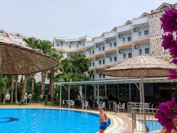 Маленькая, но аккуратная территория, приветливый персонал. Еда норм, нам "зашли" аппетитные пиццы и пиде прямо из печки. Не особо погурманишь, но найдешь, что съесть. Удивило отсутствие сладостей, но для меня это на пользу). Детям понравилась пенная вечеринка, бассейн с горками. Мы с мужем оценили живую музыку по вечерам. Море и пляж хороши. Спа салон, его услуги и персонал очень приятны: профессиональны, интеллигентны, клиентоориентированны. Мы останавливались на 3 ночи, отель выбирали по цене. Очень довольны своим выбором, отель превзошел наши ожидания. Жаль, не успели посмотреть светлячков и химер в окрестностях отеля. Придется вернуться)