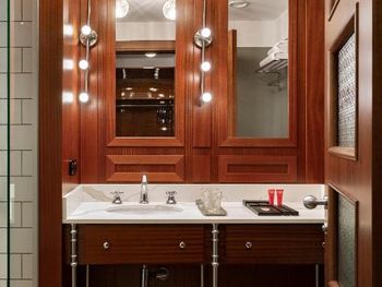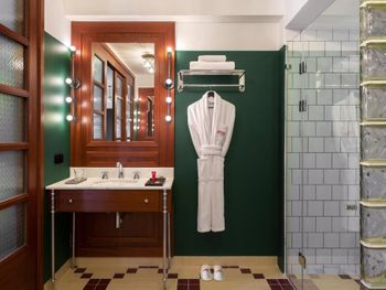 В номерах мягкие халаты, чайный набор, все необходимые гигиенические принадлежности.