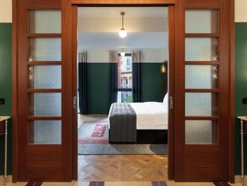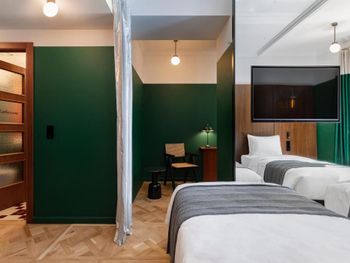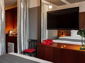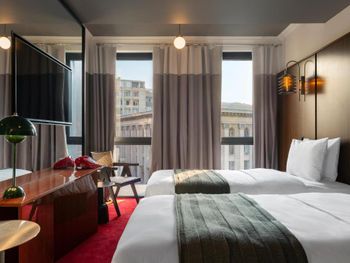 Очень тихо в комнате, идеальная шумоизоляция была у меня, блэк аут шторы! Я спала как младенец. Очень стильный отель, просто приятно находится внутри, как будто в кино. Все супер.