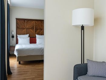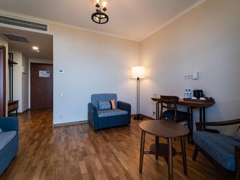 Смутило отсутствие холодильника в номере . Номер был с видом на лес (стоянку ), там утром немного шумно , из-за подготовки к завтраку и вывоза мусора.