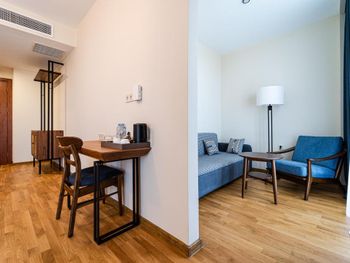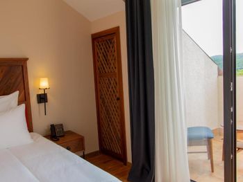Прекрасный номер - чистый, комфортный, очень удобная кровать, замечательный балкон с видом на окрестности и горы. Нам еще сделали апгрейд номера и ранний заезд - большое спасибо! В санузле прекрасная душевая с дверью - ничего не выливается в общее помещение, что нечасто в местных отелях. Так же прекрасные мыльно-шампунные средства с чудесным ароматом. Воздух свежий! Мы спали с открытым балконом! Но если соседи на балконе курят, придется этого лишится. На территории отеля лесопарковая зона с гамаками и пуфами - можно прекрасно отдохнуть в тени и расслабиться. Хороший бассейн с видом. Очень вкусные завтраки! Персонал очень гостеприимный, улыбчивый, всегда готов выполнить ваше пожелание.